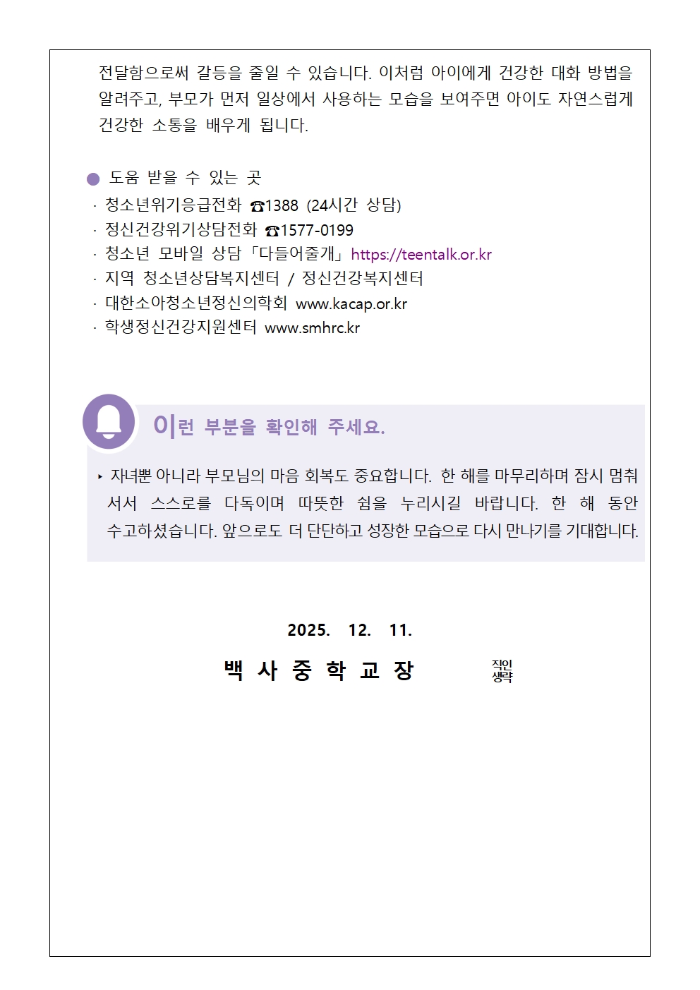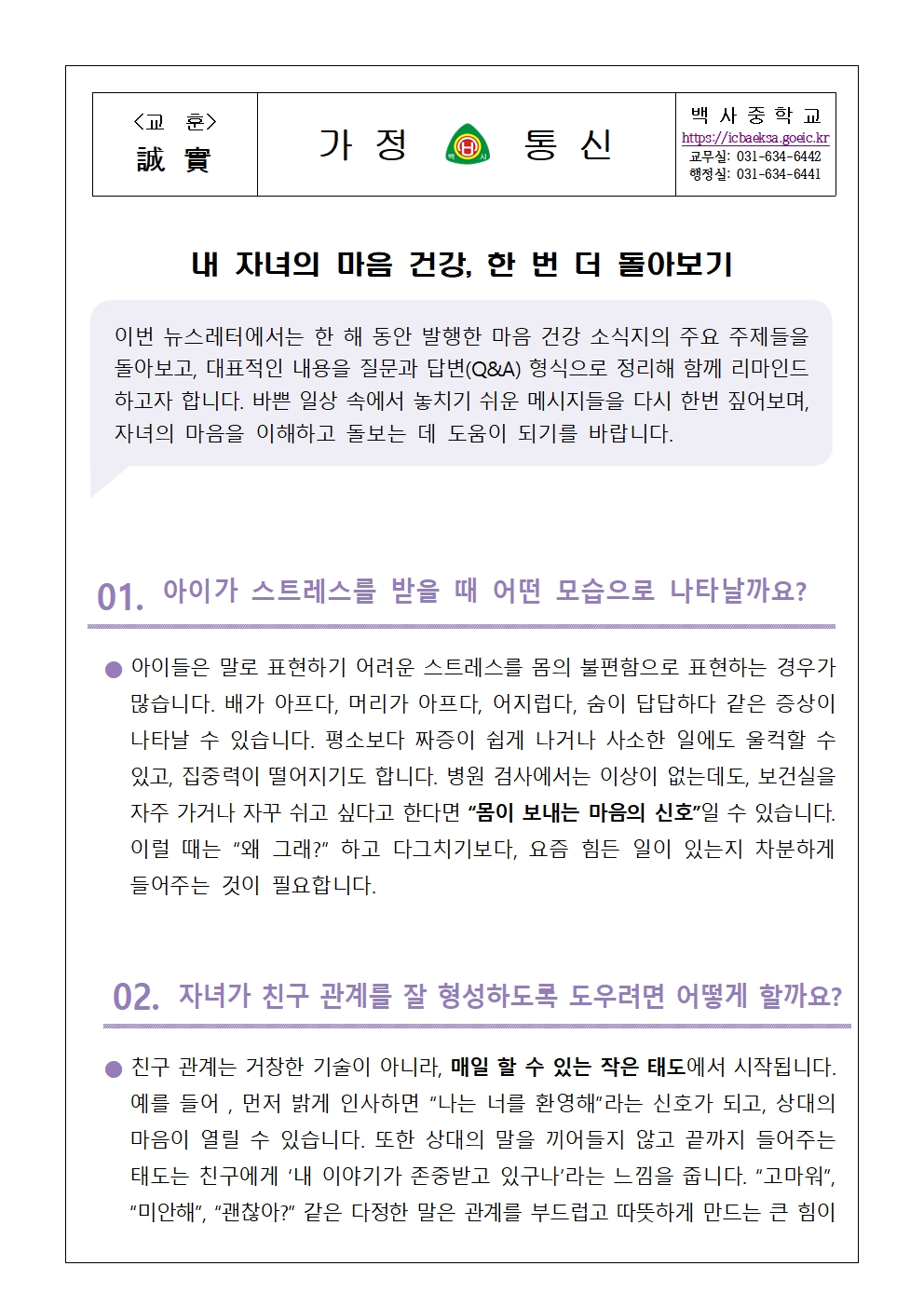 정신건강 뉴스레터-내 자녀의 마음건강, 한번 더 돌아보기
